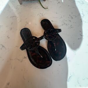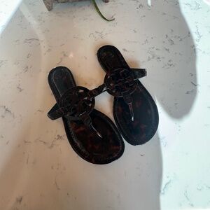TORY BURCH WOMEN'S SIZE 9 BROWN PRINT MILLER SLIDES BRAND NEW