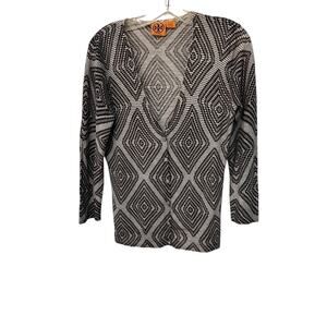 TORY BURCH WOOL ABSTRACT PRINT CARDIGAN SZ M