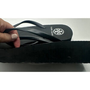 TORY BURCH Wedge Platform FLIP FLOPS (SIZE 7) rubber sandals Black emblem