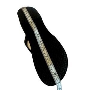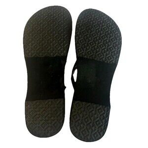 TORY BURCH Wedge Platform Gold Logo Flip Flops Black Women Sandals Size US 9?