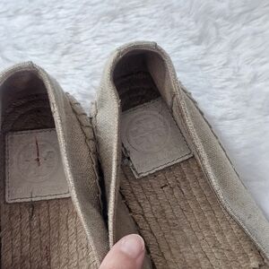 TORY BURCH Weston Flat Espadrille Canvas Slip-On Leather Logo