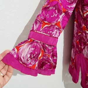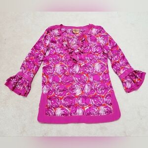 TORY BURCH Woman's Tunic Blouse Geometric Print Silk Blend 3/4 Sleeve Size 8