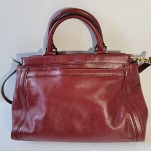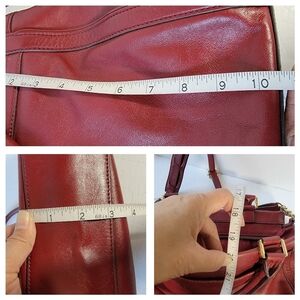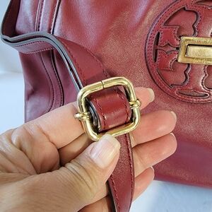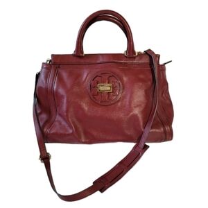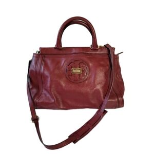 TORY BURCH Women Red Leather Slink Tote Bag Double Handle Sz Large Office Travel