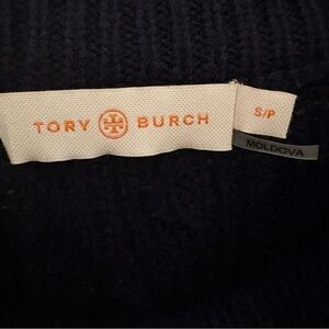 TORY BURCH Women Valero Navy Wool Blend Cable Knit Sweater Fringe Hem Size Small
