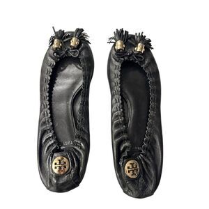 TORY BURCH Women’s Ballet Leather Tassel Ballerina Flats Shoes SZ 8.5M black ree