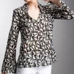 TORY BURCH Women's Black & White Monkey Print Sequins V-Neck Cotton Blouse Sz 0 or XS