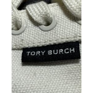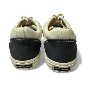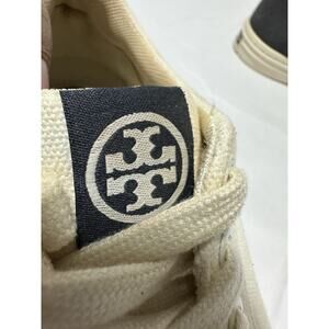 TORY BURCH Women's Classic Court Lace Up Canvas Sneakers Ivory & Black size 7.5M