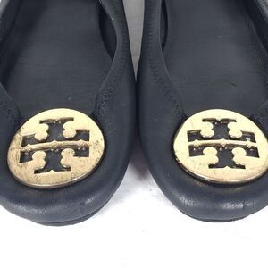 TORY BURCH Women's MINNIE US 10,5M Black Leather Logo Slip On Ballet Flats