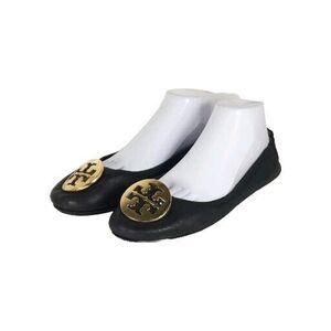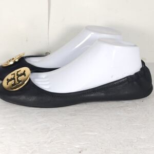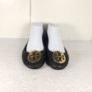 TORY BURCH Women's MINNIE US 10,5M Black Leather Logo Slip On Ballet Flats