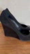 TORY BURCH Women's Sophie Wedge Black Suede High Heel Silver Logo Size 8.5 M