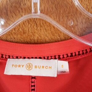 TORY BURCH Womens Top Size 0 Red Blouse Keyhole Silk Sleeveless Perforated