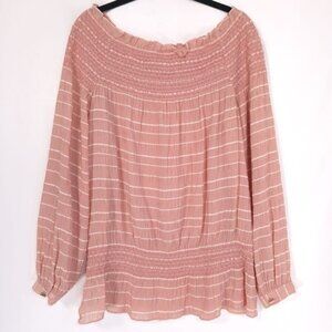 TORY BURCH Women's Top Size 6 SILK Blend Pink Chiffon Long Sleeve Off Shoulder Style 13121197