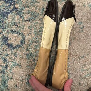TORY BURCH Women's Beige & brown patent leather ballet flats shoes MINNIE