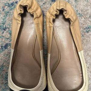 Step out in style with these Tory Burch ballet flats. Featuring a chic black and tan design, these shoes offer both elegance and comfort. Perfect for any occasion.
