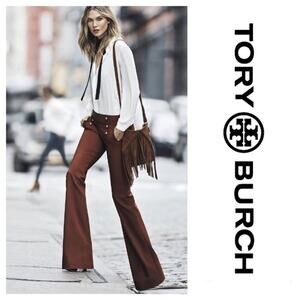 TORY BURCH Wool Wide Leg Flare Women's Pants 4 Olive Green Sailor Military Tweed