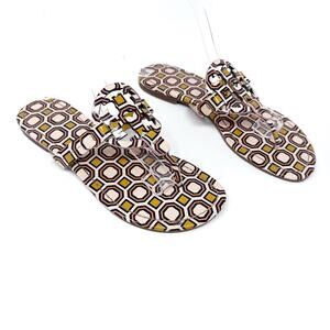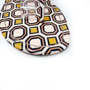 TORY BURCH Yellow Pink Geometric Print Patent Leather Miller Sandals Size 8