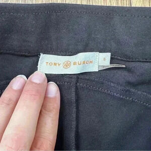 TORY BURCH black Seam Front Pull On Stacey Ponte 25" Crop Flare Pants Small Work