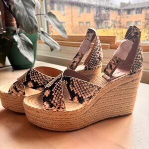 The Tory Burch Selby 105 mm Wedge Espadrille sounds like a chic and trendy sandal for the season. Made with a leather upper, an open-toe design, and an adjustable ankle strap, it combines style and comfort. The espadrille-wrapped midsole, lightly padded footbed, and rubber sole add to its appeal and practicality. With a 4-inch heel and a 2-inch platform, it offers both height and stability.
