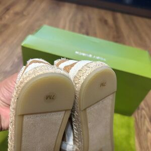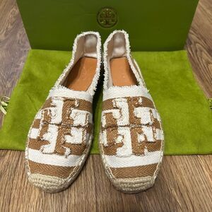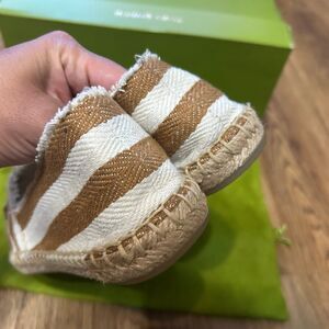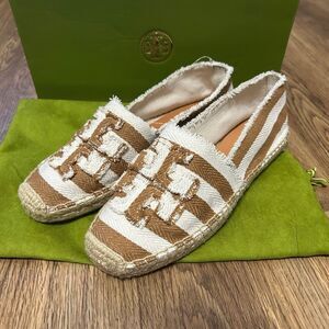 TORY BURCH striped textile leather espadrilles flats slip on shoes women’s 7 new