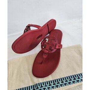 TORY BURCH sz 7.5 Torry Red Soft Calf Leather Miller Flat Sandals NIB + Dust Bag