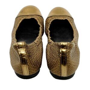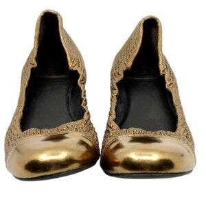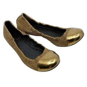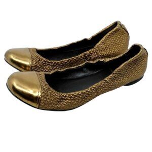 TORY BURCH~Anne Marie~GOLD CAP METALLIC BRONZE LEATHER BALLET FLAT SHOES SZ 7.5