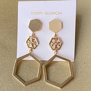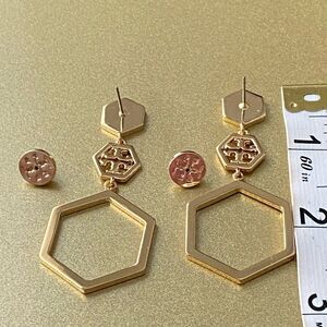 TORY BURCH•Goldtone geometrical logo Earrings
