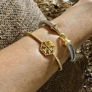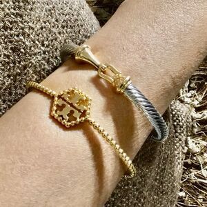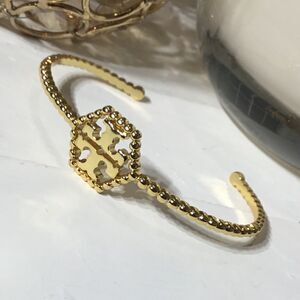 TORY BURCH HEXAGON 18K GOLD PLATED OPEN BRACELET