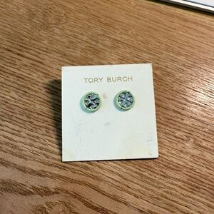 TORY BURCH Miller Enamel Stud Earrings In Tory Silver/ Crushed Mint