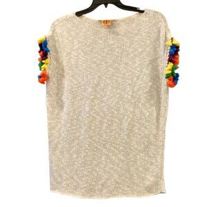 This is a TORY BURCH~Pom Pom SHORT SLEEVE SWEATER BEIGE COTTON LINEN OVERSIZED