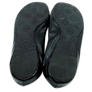 TORY BURCH~Reva Logo~BALLET FLATS~Black Patent Leather Shoes~SIZE 7.5