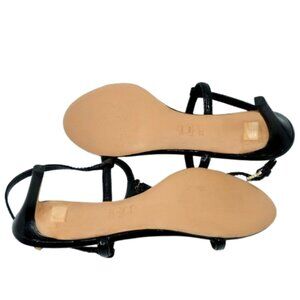 TORY BURCH~T-Logo~BLACK PATENT SAFFIANO HEELED STRAPPY SHOES 7.5M