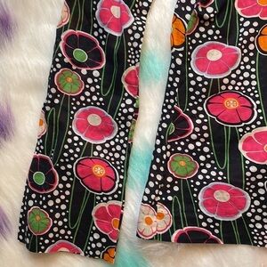 Black top with white polka dots Pink, orange, and green flowers / lily pads with classic tory burch logos incorporated throughout White oval pattern embroidery along neckline 100% Cotton.