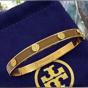 Tory Burch signature sophistication to your wrist stack with an enameled hinge bracelet clasped with iconic double-T logo hardware.