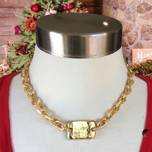 TORY BURCH ROXANNE DOUBLE T LOGO CHUNKY LINKS NECKLACE 18K GOLD