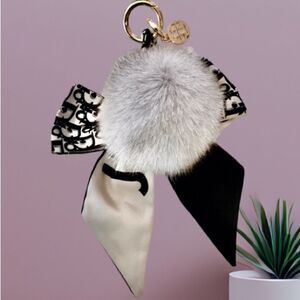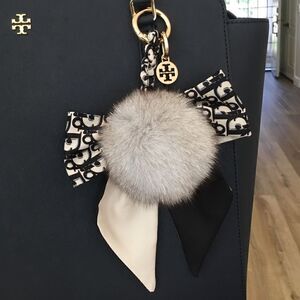 TORY BURCH KEY RING FOX FUR SILKY BOW