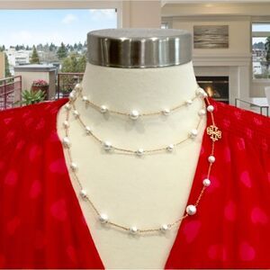 TORY BURCH KIRA LOGO PEARL NECKLACE