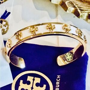 Tory Burch Lacquered Raised Logo Studded bracelet