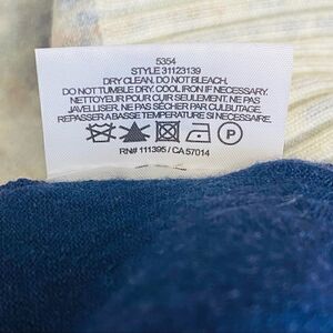Tory Burch printed wool crew neck jumper sweater in a Medium. Navy white and red. Plaid paint splatter print, crew neck, long sleeved. Lightweight but also warming. Ribbed cuffs, hem and collar Length 26.5" Sleeve 24" Pit to Pit 17"