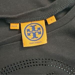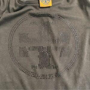 TORY BURCH Rhinestone Logo Black T-Shirt is gentle worn. Size: S