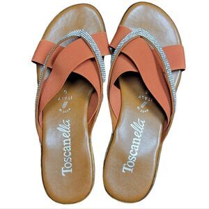 TOSCANELLA Brown and Orange Sandal with diamond accents