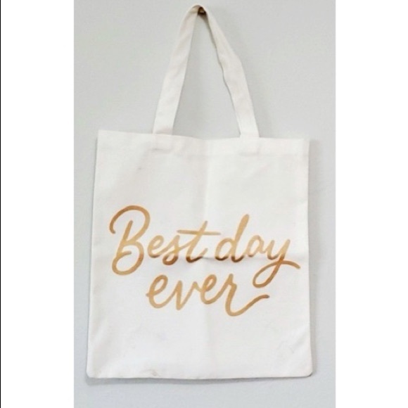 Best Day Ever Tote! Super cute, multiples in stock. White with gold writing. Back is plain white. Excellent condition, never used. Will do a deal if you want to purchase more than 1!