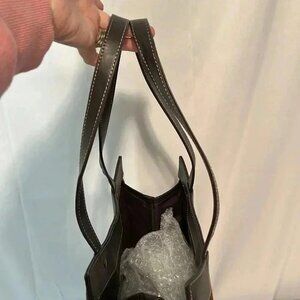 TOTE HANDBAG TWO TONE SUEDE EMBOSSED FLORAL PATTERN DOUBLE HANDLES