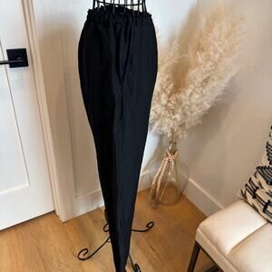 TOTEME Black Stretch Linen Slacks Wide Leg Elastic Waist Pant- 32 EU /0 US