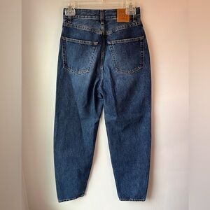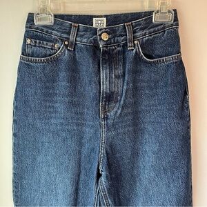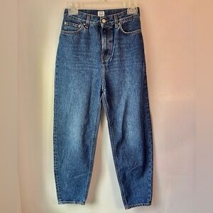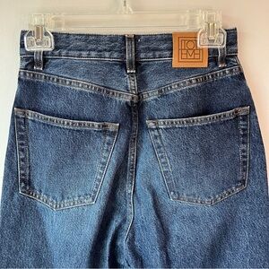Gorgeous pair of designer TOTEME baggy denim tapered leg jeans in a medium dark wash. Loose fit, quality denim.
