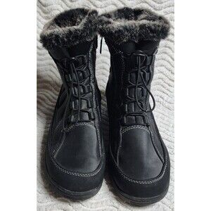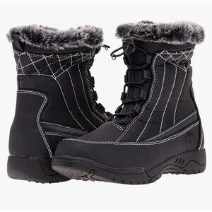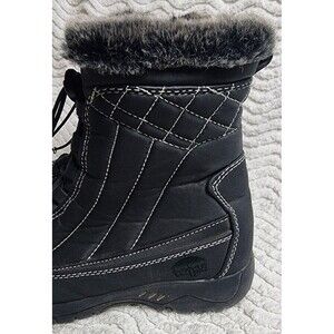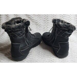 🥾TOTES Eve Winter Storm Snow BOOTS Black Quilted White Stitch Faux Fur Sz 7 EuC