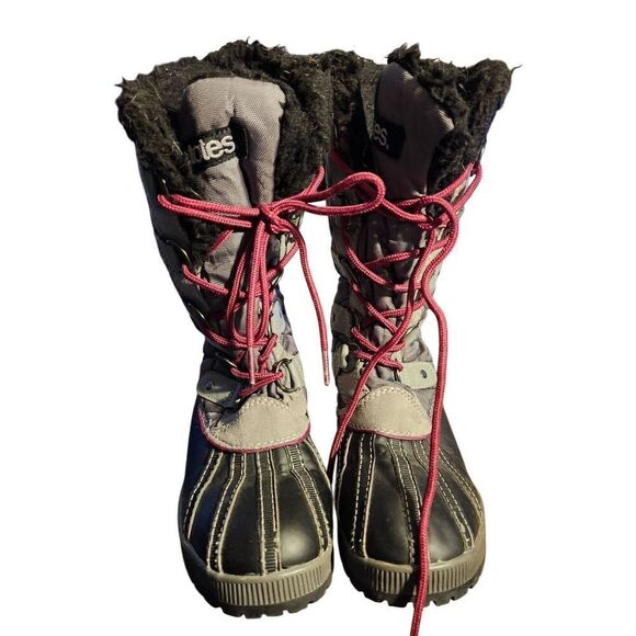 TOTES WINTER SNOW BOOTS WOMENS SIZE 7 GRAY WITH BLACK FAKE FUR. RUBBER SOLES. AP