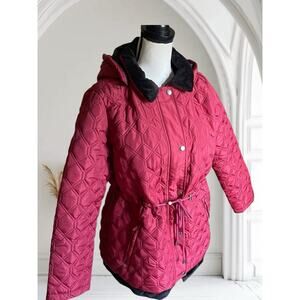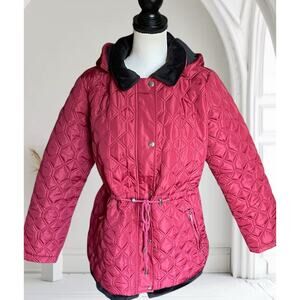 TOTES WOMENS Brick Red Removable Hood Quilted Fall Winter Coat Jacket XL 12 14