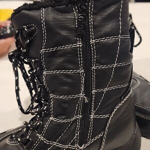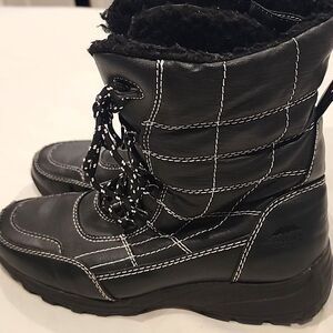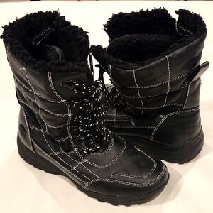 TOTES Stylish black quilted winter boots with white stitching. Perfect for cold weather. Women's size 8.