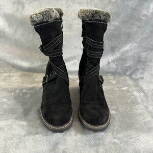 TOTES Women boots 7 Jade Black Waterproof Double Zip Snow Boots Fur Lined