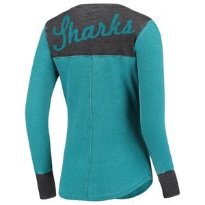 Show off your team pride in style with this Touch by Alyssa Milano San Jose Sharks Blindside thermal top. Crafted in soft waffle-knit fabric, it features the official NHL-licensed Sharks logo on the front and bold “Sharks” lettering on the back. Perfect for game day or casual wear, it combines sporty spirit with feminine flair. New with tags and ready to wear.